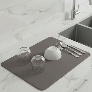 • [ Absorbent Drying Mat ] With absorbent microfibers, the Dish Drying Mat can absorb water from the dishes and dry quickly, adopting a three-layer design.