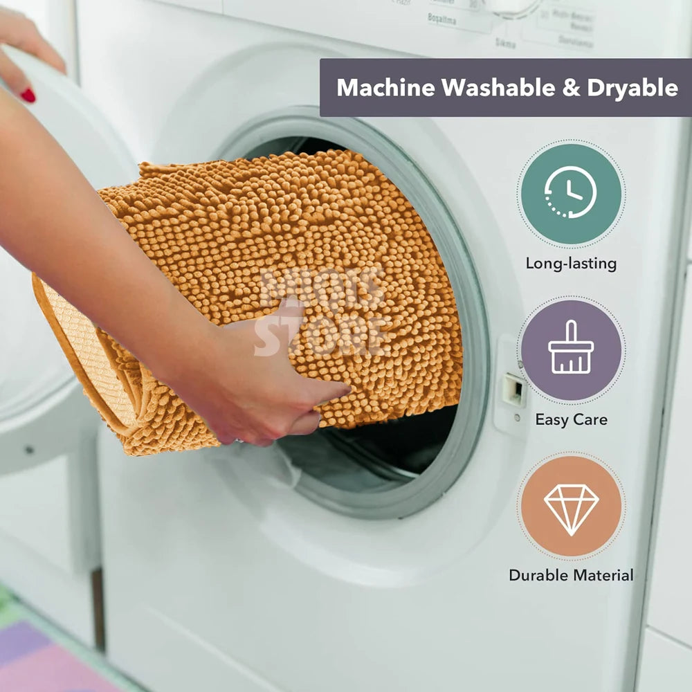 - Microfiber Chenille,Crafted from 100% microfiber chenille, this bath mat offers a plush, absorbent surface for dry, comfortable steps.
