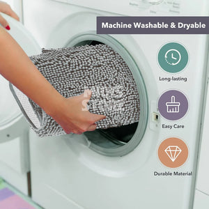 - Microfiber Chenille,Crafted from 100% microfiber chenille, this bath mat offers a plush, absorbent surface for dry, comfortable steps.