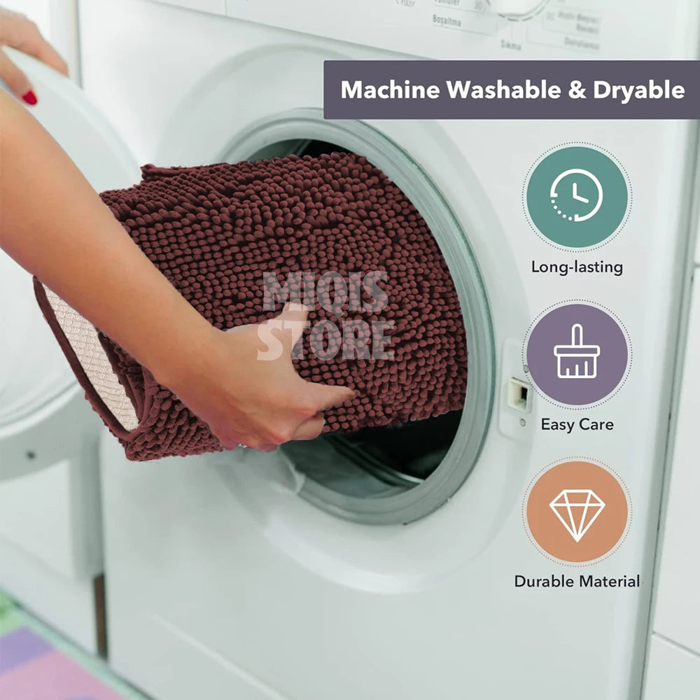 - Microfiber Chenille,Crafted from 100% microfiber chenille, this bath mat offers a plush, absorbent surface for dry, comfortable steps.