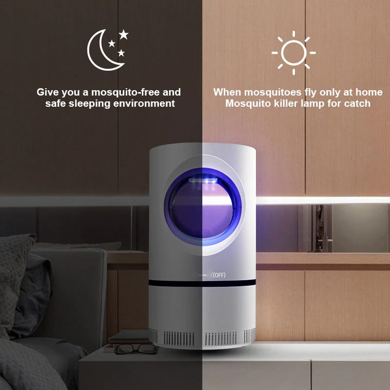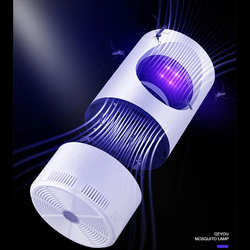 - The fan of the mosquito killer lamp stirs the surrounding air at high speed to form a vortex, and when the mosquitoes approach the air outlet, they will be sucked into the bottom mosquito storage box.