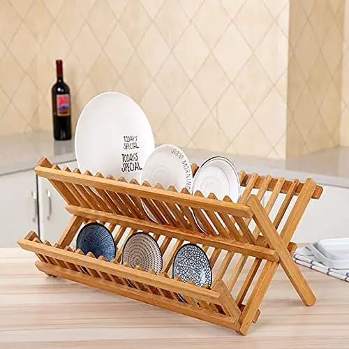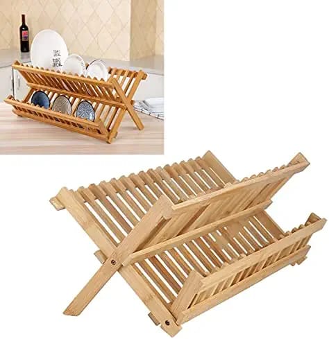 Water Proof Bamboo Wooden Foldable Dish Rack